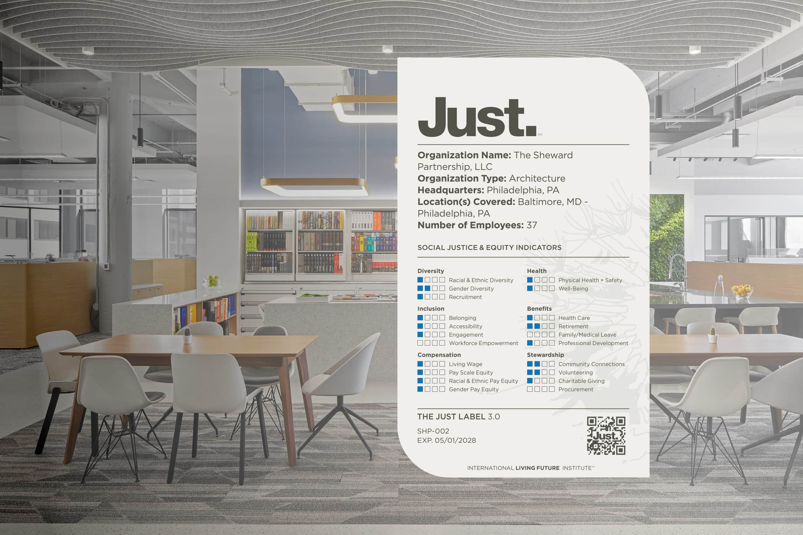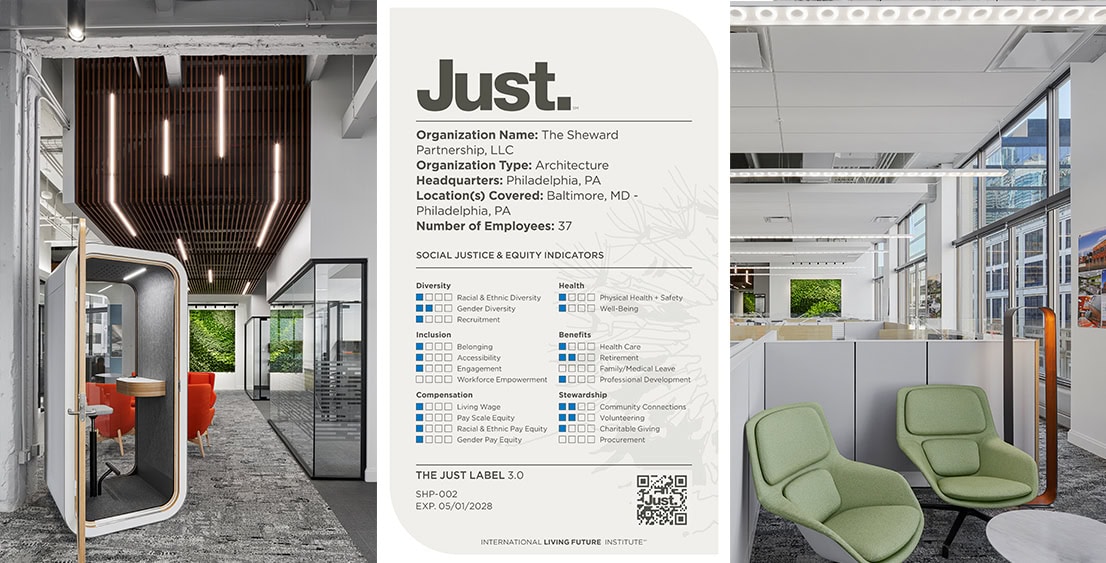 We are proud to announce that The Sheward Partnership, LLC has achieved the Just 3.0 Label, marking an exciting new chapter in our ongoing commitment to transparency, equity, and social responsibility! Created by the International Living Future Institute (ILFI), the Just program continues to serve as a voluntary disclosure platform that helps organizations strengthen internal practices while contributing to a more equitable and inclusive society.